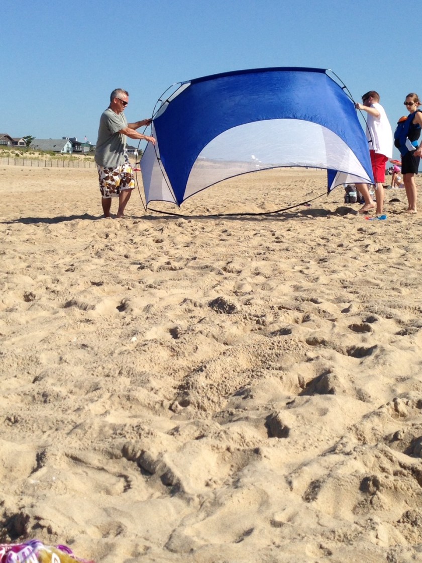 Eric coming to the aid of a young couple with small children at the beach. He is such a social butterfly with a good heart…