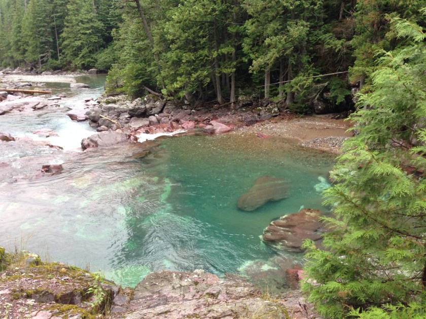 Phenomenally magnificent! We have never seen anything like it. The road through the park is called Road To The Sun , and deserving of the name. The terrain is dramatic, to say the least. The water is so clear you can see every stone in the rivers, displaying pastels of green, pink, red, and turquoise. The lakes are bluer than blue. The wildflowers flood the hillsides with vivid orange, yellow, pink, and purples. The actual glaciers are amazing to see as they have a distinct glow ; many confuse snow fields for glaciers. One peak in the park offers a fun fact of interest, the Triple Divide, with an elevation of 8,018 ft. The water coming off the peak flows into three directions contributing to the Pacific through the Columbia river, to the Mississippi River then to the Gulf of Mexico, and to the Hudson Bay into the Arctic oceans; all from one peak. The road through the park, at times, is down right scary. You are on the side of an 8,000 ft summit with no guard rail at some spots…it’s exilerating. The national parks are crazy busy this time of year, so traffic was heavy at 8:00 am in the park, while the fog was still lifting. Weather conditions changed every few minutes, (kind of reminded us of Garrett County ). Temps never got above 62 in the park. Brrrr. But it didn’t matter, we were too busy being amazed. Time flies at Glacier. Before you know it hours have passed and you are only have way through the park. It’s defiantly a multi day trip. You see something new everyday.