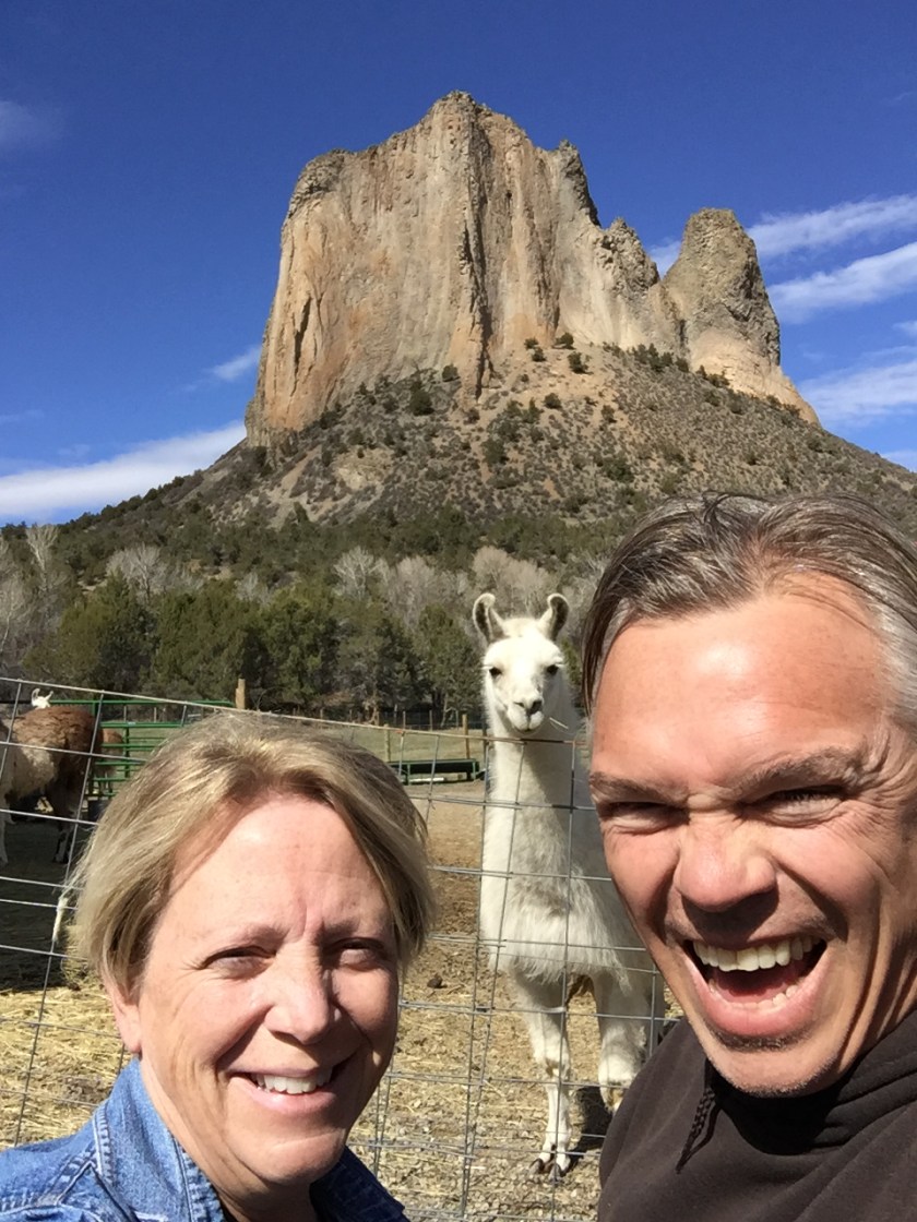By happenstance and trustedhousesitters.com, we find ourselves deep in the Colorado Rockies on a small ranch that includes a beautiful Adobe house, five llamas, a dog, and a cat. The geography is somewhere between a rock a hard place; with the igneous Needle Rock on one side and a luscious north face of South Saddle Peak on the other.