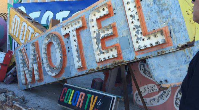 Yes, it’s true! You can have a culturally enriching experience in Las Vegas. It was a sign, a neon sign that convinced us. Las Vegas is known for its bright lights and glitz. Without it, Las Vegas is just another dry desert town. Well the folks at the Neon Museum in Las Vega have a real class act. They’ve taken on the responsibility to tell the real story of Las Vegas by way of iconic lighting fixtures and the signs of days gone by. The museum docent was amazing and obviously had a passion for her job and the Vegas story. The tour took us through the “Boneyard”, the largest outdoor collection of vintage signs.