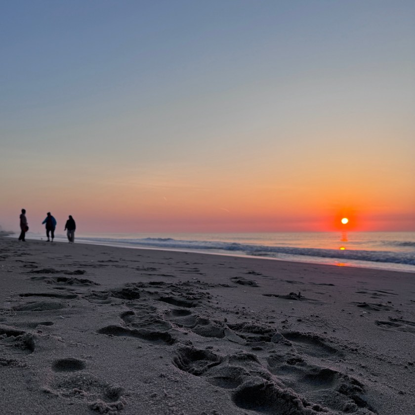 The morning sunrise over the Atlantic was spectacular. We nestled into a spot surf-side and watched an intense light show at the break of dawn. This never gets old.