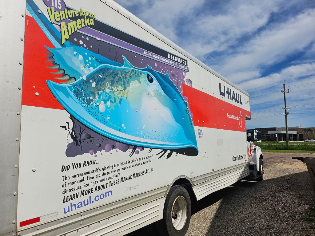 The horseshoe crab has performed this annual moon dance for many millennia. We felt privileged to be part of this incredible journey of existence in this moment in time. As the universe reveals connections, this pic came from our son who rented a U-Haul the same day and this was on it: