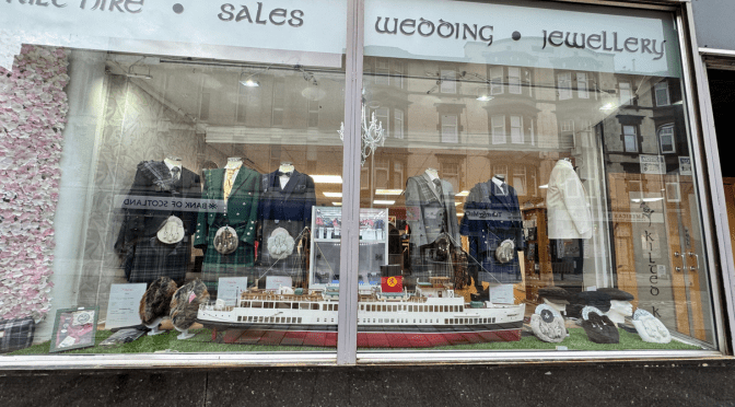 Glasgow Scotland 🏴 was a kilted thoroughfare. An ancient city with plenty of old architecture and cobbled streets. The shop windows were filled with the finest kilts and all things Scottish. This was the only city in Scotland we were safe to visit due to the proximity of Storm Amy. We missed out on Edinburgh, Inverness, and Orkney Islands. Darn it!