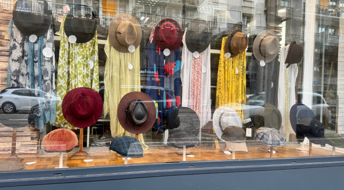 We strolled along high end storefronts with impressive displays of fine garments, hats, and scarves. Indeed, window shopping at its finest. Many residential apartments had dressed mannequins on the balcony. Not sure why, but it was fun.