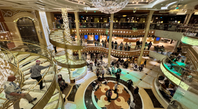 The ship was huge! The interior of the ship was classy and a wee bit pretentious. The passengers, mostly seniors, were from all over the world. We met several retired folks who cruise for weeks or months at a time.